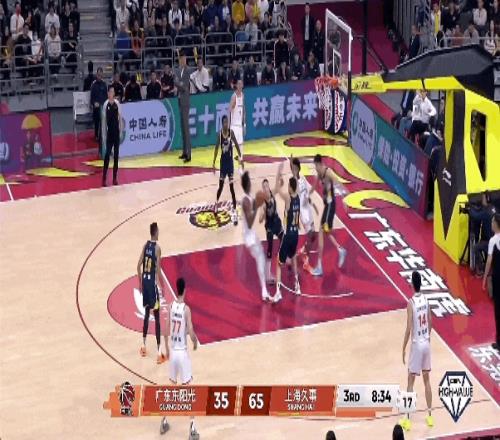 广东男篮有点被大鲨鱼打懵了,不仅毫无还手之力,还屡送失误。怀特塞德拿下篮板,古德温控球过半场,侧翼李弘权拿球出手三分命中!广东男篮的进攻稍有起色,但防守端仍然找不到办法限制上海队。